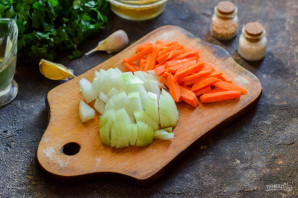 Очистіть овочі, цибулю наріжте кубиками, моркву — невеликими смужками або кубиками, можна натерти на тертці.