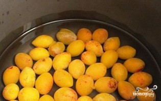 Сливи помийте і викладіть у чашу мультиварки, залейте водою так, щоб вона їх покрила. Готуйте під кришкою в режимі «Суп» 7 хвилин.