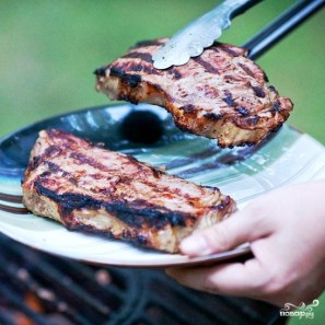 Блюдо готовится без лишних сложностей. Я не знаю более простого способа вкусно приготовить стейки на гриле, нежели этот. Стейк, маринованный в луковом соке - это невероятно простое в приготовлении (по сути, только два ингредиента - мясо да лук), но фантастически вкусное блюдо, от одних воспоминаний о которых сводит челюсть, а рот переполняется слюной. Что уж говорить о эмоциях, захлестывающих тебя тогда, когда стейк, маринованный в луковом соке, лежит у тебя на тарелке :) Готовое блюдо можно подавать к столу.