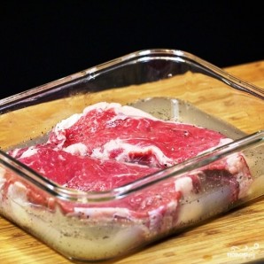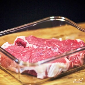 Выкладываем стейки в форму, в которой удобно будет их мариновать.