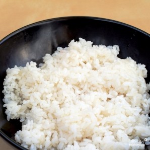 Первым делом необходимо отварить до готовности рис для суши. При желании, в готовый рис можно добавить немножко специального соуса для суши.