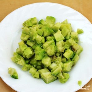 Авокадо чистим и нарезаем кубиками.