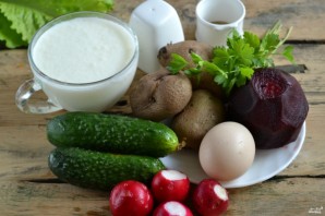 Підготуйте всі необхідні інгредієнти. Добре промийте всі овочі, яйця зваріть укрутую.