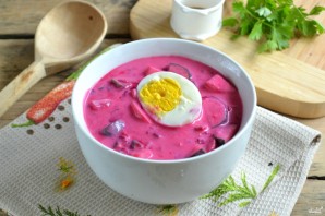 Подавайте бурячник з половиною вареного яйця.