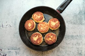 В сковороду налейте растительное масло и разогрейте на среднем огне. Выложите сырники, убавьте огонь и обжарьте с двух сторон до румяной корочки.