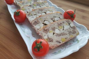 Форму с террином накройте фольгой и поставьте в емкость с горячей водой. Запекайте в разогретой духовке при температуре 210 градусов в течение 2 часов.