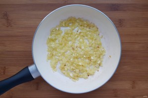 Одну луковицу мелко нарежьте и обжарьте до золотистого цвета. В конце добавьте измельченный чеснок. Обжаренный лук с чесноком отложите в сторону.
