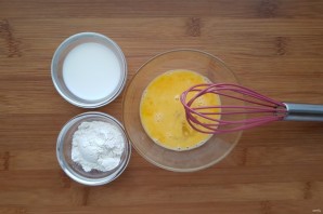 Взбейте яйцо, добавьте сливки, а затем муку. Перемешайте до однородности.