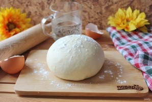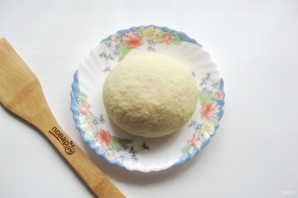 Перекладіть тісто на посипану борошном поверхню. Вимішуйте, збираючи тісто у кулю. Воно має бути досить твердим, щільним, але еластичним.