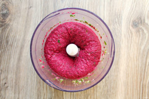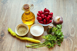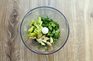Перець і зелень обдайте окропом, обсушіть, часник почистіть. У чашу блендера покладіть нарізаний перець, петрушку та часник. Збийте все до однорідної маси.