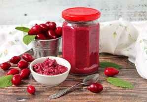 Додайте очищений кизил, влийте три столові ложки відвару і збийте до однорідної маси.