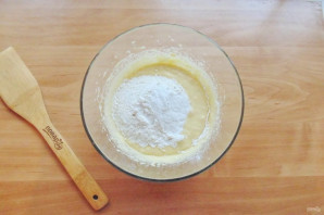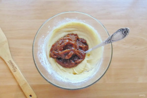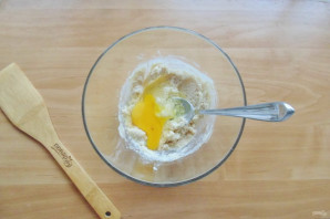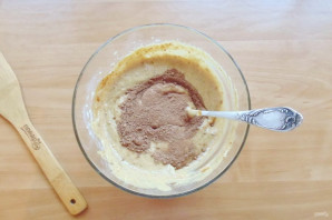 У миску покладіть м'яке вершкове масло, додайте цукор з корицею та добре перемішайте. Потім по одному додайте до тіста два яйця.