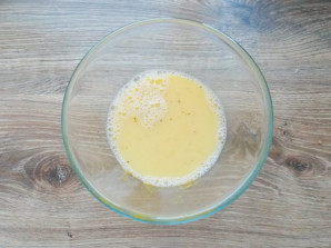 У миску розбийте яйце, влийте воду і посоліть. Перемішайте все до однорідності.