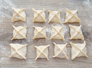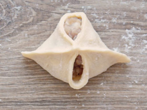 Щоб зробити манти, з'єднайте краї квадрата.