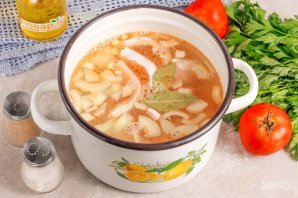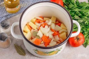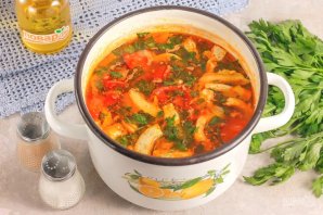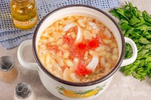 Наріжте помідори великими кубиками і додайте до ємності. Варіть страву близько 20 хвилин, потім додайте сіль і мелений чорний перець. За бажанням можете додати в бульйон пару очищених зубчиків часнику.