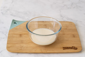 Смешайте в глубокой миске растительное молоко и рисовый уксус. Оставьте на 5-10 минут.
