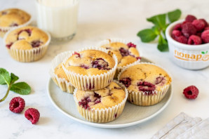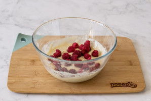 Добавьте в тесто малину, размешайте.