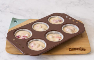 Наполните формы для капкейков тестом, чуть больше половины. Выпекайте примерно 25-30 минут, готовность проверяйте шпажкой.