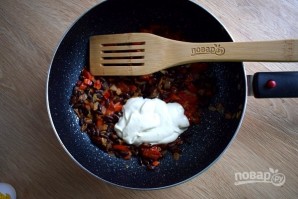 Добавьте густую сметану, соль, перемешайте, тушите 2 минуты.