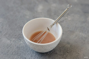 Для заправки змішайте рослинну олію, червоне винний оцет і гірчицю.