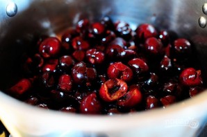 1. Додайте вишні в каструлю з цукром. Доведіть до кипіння та варіть, доки вишні не стануть м’якими, а сік — сиропоподібним. Потім зняти з вогню та охолодіть вишні до кімнатної температури.