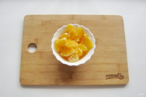 Апельсин мелко нарежьте, удалив косточки. У меня был апельсин без косточек.