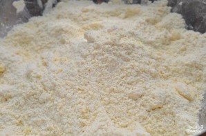 Добавляем к мучной смеси сахар, а затем перетираем всю эту смесь до консистенции крошки.