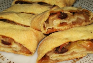 Идеально подойдёт к чаю и кофе. Приготовим яблочный штрудель с изюмом в домашних условиях. Я использую, уже готовое слоеное тесто. Яблоки обжариваю с изюмом и корицей и формирую штрудели, добавив миндаль. Затем, запекаю их в духовке, примерно 20-25 минут. Надеюсь, у вас все получится. Удачи Можно подавать с чаем или кофе.