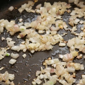 Смажимо дрібно нарізаний цибулю на вершковому маслі до золотистого кольору.
