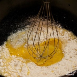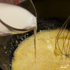 Туди ж вливаємо молоко, збиваємо до однорідності.
