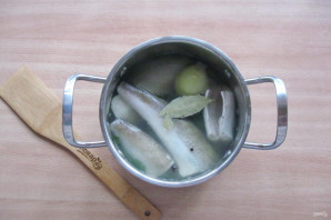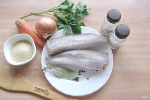 Подготовьте ингредиенты для приготовления заливного из хека.