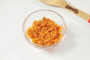 Моркву натерти на дрібній тертці.