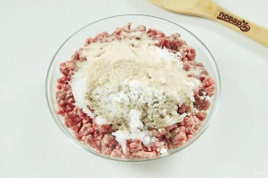 Додайте подрібнений цибулю, крохмаль, столову ложку сухарів і сіль за смаком.