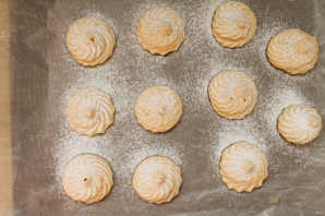 Уберите в прохладное место на 8-10 часов для полной стабилизации. Посыпьте верх зефира сахарной пудрой.