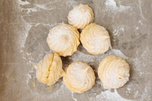 Сразу, пока масса теплая, переложите ее в кондитерский мешок с насадкой звездочка и отсадите зефир на силиконовый коврик или бумагу для выпечки.