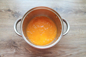 Масса должна увариться до 500 грамм. Снимите с огня и пробейте блендером до однородной массы. При желании протрите через сито.