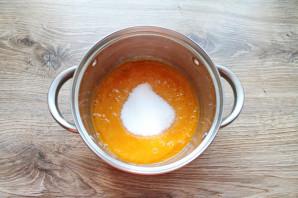 Всыпьте в пюре 100 грамм сахара и перемешайте до растворения. Дайте полностью остыть.