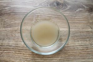 В чашу всыпьте агар-агар, и влейте холодную воду. Оставьте на один час при комнатной температуре.
