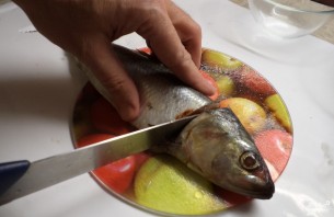Рыбу моем, отрезаем голову и избавляемся от внутренностей. Аккуратно по хребту удаляем кости.