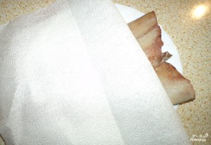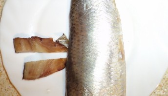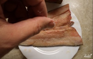 Равномерным слоем соли покрываем филе сельди. После рыба подвешивается на крюк, либо остается на сквозняке на 2-3 часа.