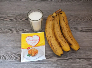 Смешайте желатин с одной из частей отложенного бананового пюре. Перемешайте. Оставьте на 15 минут.
