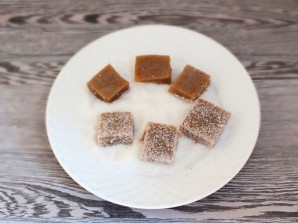 На тарелку насыпьте 3 ст.л. сахара, обваляйте мармелад со всех сторон.