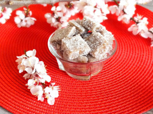 По истечении времени достаньте форму с мармеладом, разрежьте пласт на кусочки желаемой формы.