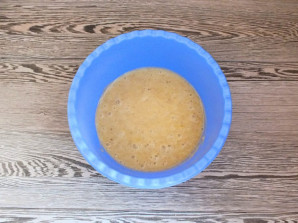 Бананы очистите, переложите в чашу. Пробейте погружным блендером в пюре и разделите на две части.