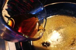 На сковороде растопите сливочное масло. Не позволяйте маслу закипеть. В эту же сковороду медленно залейте кленовый сироп. Хорошо всё перемешайте и дайте потушиться несколько минут.