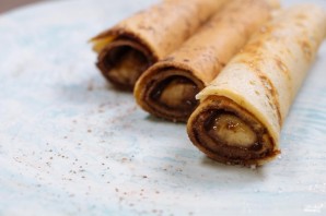 Я подаю этот соус ещё теплым с тонкими блинчиками. Соус вместе с кусочками бананов я украчиваю в лист блина и сворачиваю его трубочкой. Так соус не растекается по тарелке и блины удобно кушать.