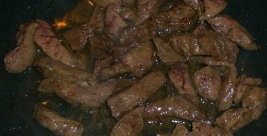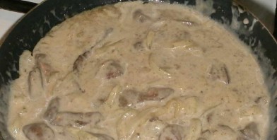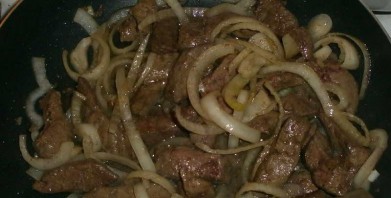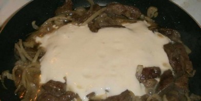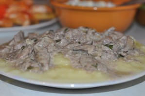 Бефстроганов из печени со сметаной