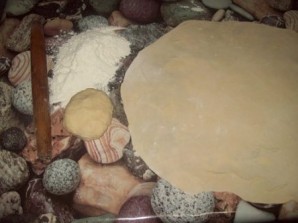 Для удобства, делим тесто на несколько частей. Каждую часто по очереди очень тонко раскатываем. Толщина теста - примерно 2-3 мм.