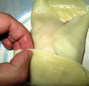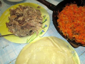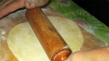 Каждую лепешку раскатываем скалкой до толщины в 2-3 мм.