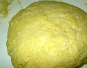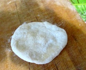 От теста отрываем крупные кусочки и разминаем их в лепешки.